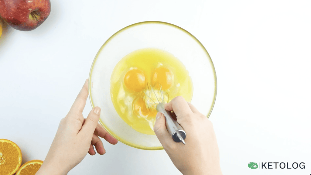 - In a large bowl, whisk together the eggs and melted butter.