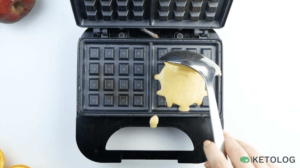 - Scoop the batter onto the preheated waffle iron in rounds to fill each waffle section.