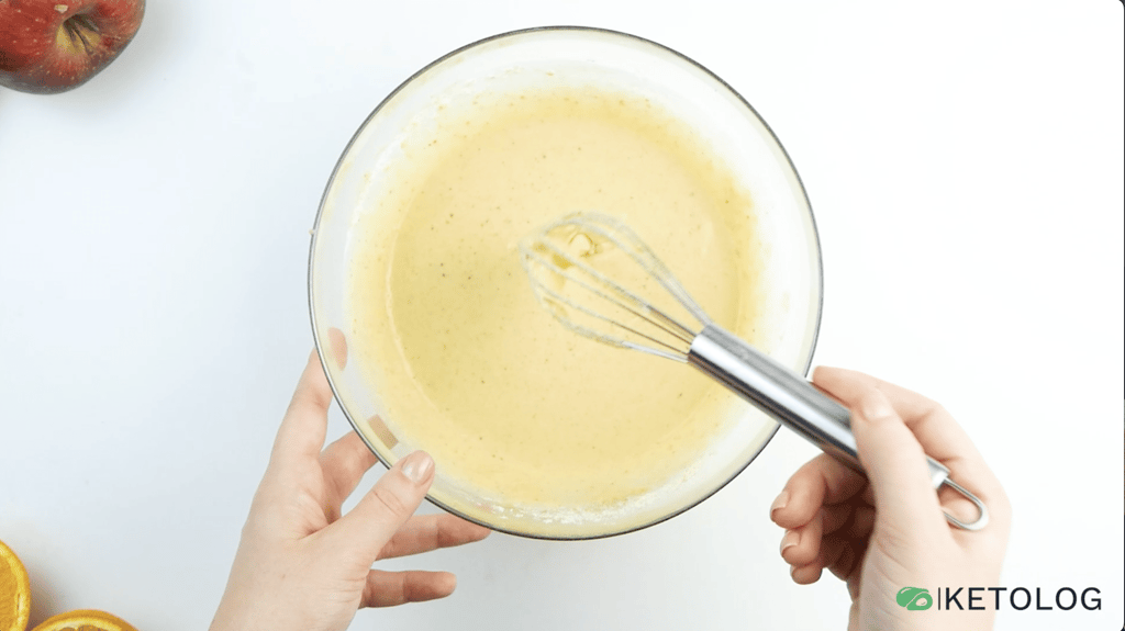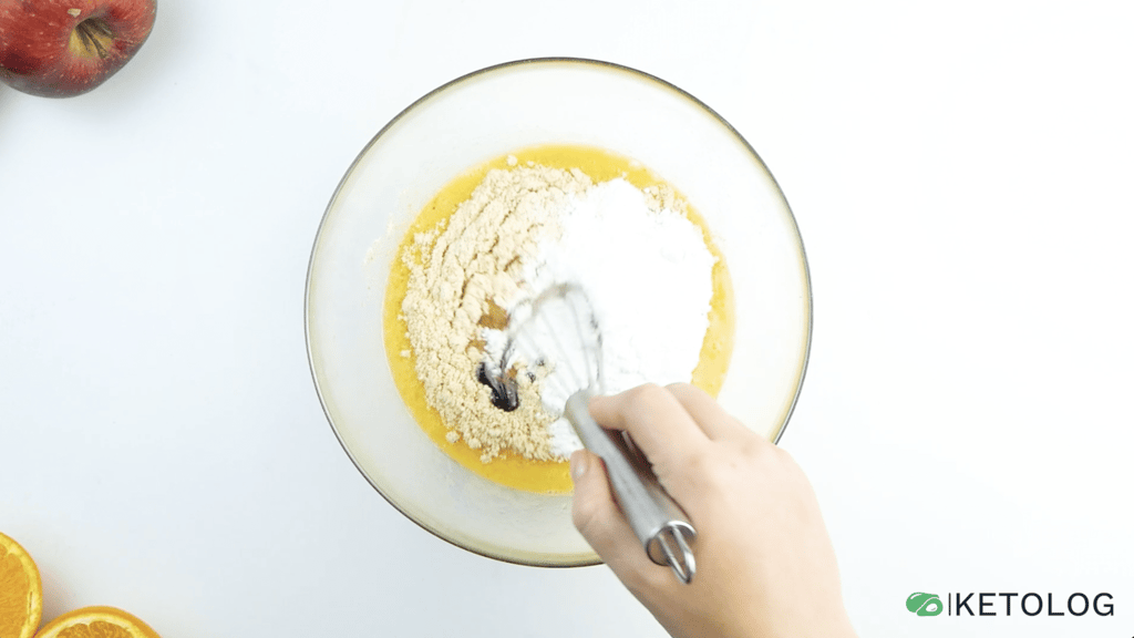 - Add the almond flour, coconut flour, baking powder, cinnamon, sweetener, vanilla extract and salt. Mix well.
